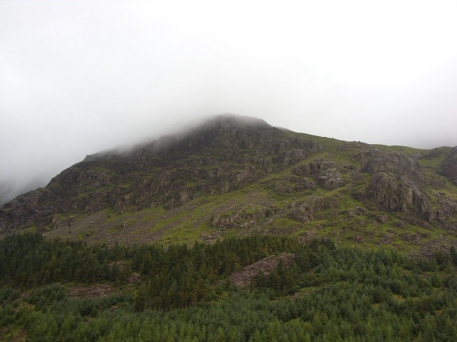 We marched on, following the path that wound uphill toward Loft Beck. The guidebook warned us that Loft Beck would be a steep climb, and it wasn’t lying. I love climbing up the side of mountains, except when I’m carrying a full wardrobe on my back, which is pretty much every time. A stream runs down Loft Beck over lots of different sized stones. It’s very pretty, but hard to appreciate when the weather is foul and you’re feeling drained. Nevertheless, whenever I watch the video I took of this section of the walk I can’t help but appreciate it. We stopped once or twice on the ascent to get our breath back and looking across at the mist-enshrouded summit of Pillar I couldn’t help but think that anyone walking across it that day would have to be insane. Funnily enough we did hear the occasional cry from that direction and possibly a whistle, but there was little we could have done to help except perhaps to pray for them. At this point I guessed we were about halfway up Loft Beck, but not long afterwards we were surprised to find ourselves at the top of the ridge. The Beck may have finished with us but the rain certainly hadn’t. Our clothes were now so sodden that it didn’t seem to matter any more.
