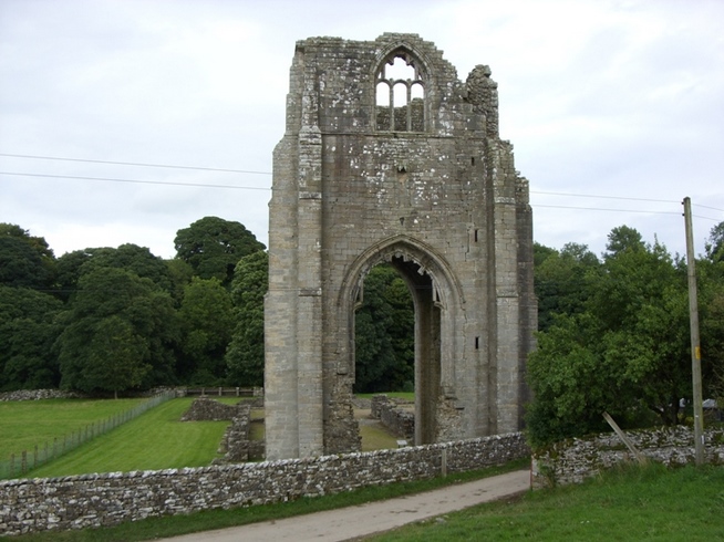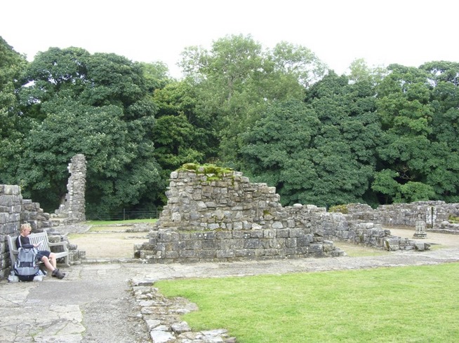 We had a fairly pleasant walk along Haweswater Beck, the grass a much more comfortable walking surface than the hard track along the reservoir. Again the signposting for the route was practically non-existent and in some places the track is pretty indistinct so we had to stand around discussing which way to go a couple of times, comparing what we could see with the map in the guidebook. We could see a farm in the distance which seemed to be in the right place for it to be the farm in the book so we decided to chance it and were relieved to find we were on the right track. Soon enough we found ourselves closing in on Shap Abbey, and instead of crossing Abbey Bridge (which I had also recognised from a diary on the internet), we turned right and followed the track to the ruins of the abbey itself. It is a pretty impressive place, even if little of it remains to give a really good idea of what it looked like.