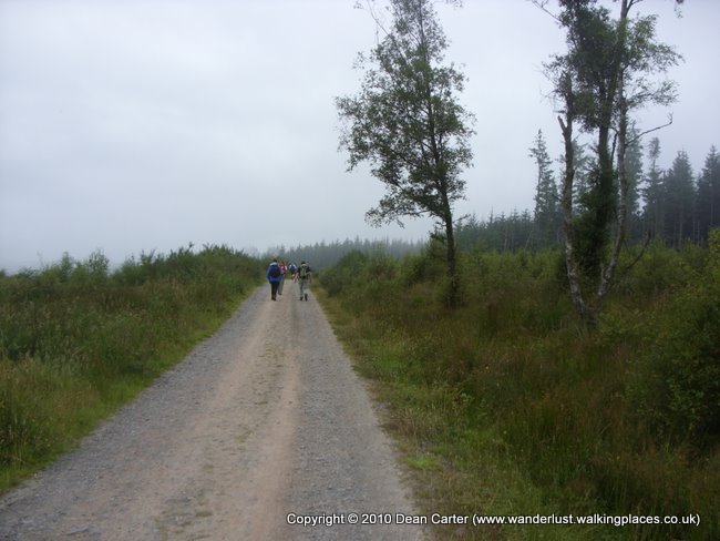 Once again we woke to a cold, misty morning. A rooster and several chickens were mooching about as we had breakfast and started packing away the tents and the rest of the gear. The rooster crowed every time a rooster on a neighbouring farm did the same, ensuring that no one was asleep after about five minutes of the racket. We were fairly quick getting ourselves organised and managed to leave the farm before anyone else, retracing our steps down the road toward Drymen but turning off through a small stile near a brook. We climbed a small hill with a signpost for the way at the top and then followed the path toward Garadbhan Forest, being overtaken at one point by two retired American guys with whom we’d meet up again later, most significantly on the last day of the Great Glen Way almost two weeks later.