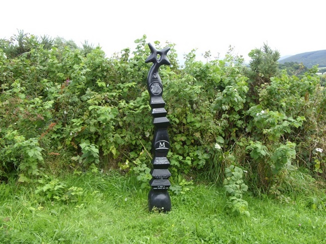 To the right of the statue was an arrangement of shrubs that spelled out ‘Moor Row’ which was the small village just down the road. We hoped Moor Row might be a good place to buy supplies. It wasn’t. The newsagent was derelict and the post office had been boarded up and closed down. We saw a local man approaching and asked him if there were any shops. He replied with a simple and unashamed ‘bugger all!’ We sighed and continued on hoping we might have more luck in Cleator. Shortly after Moor Row we saw another, more unusual monument to the Coast to Coast Walk.