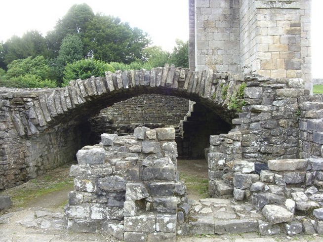 We had a fairly pleasant walk along Haweswater Beck, the grass a much more comfortable walking surface than the hard track along the reservoir. Again the signposting for the route was practically non-existent and in some places the track is pretty indistinct so we had to stand around discussing which way to go a couple of times, comparing what we could see with the map in the guidebook. We could see a farm in the distance which seemed to be in the right place for it to be the farm in the book so we decided to chance it and were relieved to find we were on the right track. Soon enough we found ourselves closing in on Shap Abbey, and instead of crossing Abbey Bridge (which I had also recognised from a diary on the internet), we turned right and followed the track to the ruins of the abbey itself. It is a pretty impressive place, even if little of it remains to give a really good idea of what it looked like.