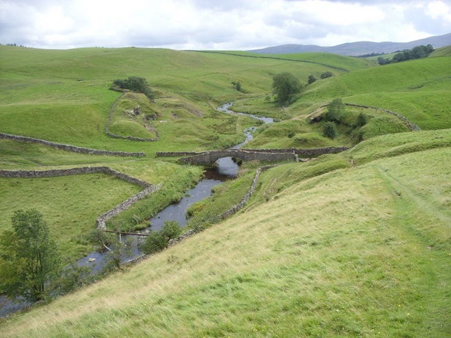 With lunch over, we continued on over some pretty uncomfortable ground for a while eventually passing Bents Farm and finding our way to the site of Severals where there is evidence of a prehistoric settlement, though we couldn’t see anything. Further along we saw a dilapidated building on the right which would have made a really nice place to live, and further on a bridge over the path which led further on to the picturesque Smardale Bridge at the bottom of the hill at Scandal Beck.