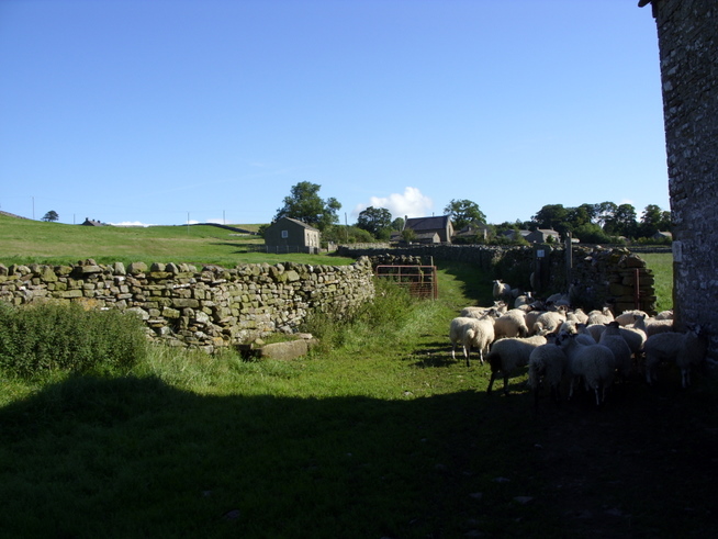 Yet again I woke several times during the night to turn over, clearly unable to get comfortable. I think I only slept at all because I was so exhausted from the day’s walk. It had only been ten and a half miles, but the climbing had done me in. I wished I’d taken my self-inflating Thermarest sleeping mat after all. It was heavy but so comfortable. We both got up and managed to pack our things away fairly quickly. The air felt a little colder than the day before, but the sky was fairly clear and it was promising to be a bright, sunny day. We left the campsite at about 8am and walked up to the shop so that Darryl could buy sandwiches, before heading down the bank to a bridge over the river Swale, then through a stile, across a field of sheep and tents, then past another bridge to get to the Reeth to Richmond road.