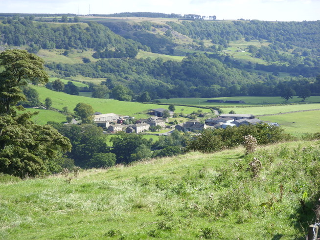 As the morning grew warmer we applied hats and sun cream and soon approached Marrick Priory passing a very muscular bull in a field that was thankfully separated from us by a nice strong fence. Unfortunately the priory was only partially visible because it was surrounded by buildings that formed an outdoor activities centre. We pressed on and I missed a turning on the left that would have taken us through Steps Wood and up the Nun’s Causeway to Marrick hamlet. It was my turn to navigate that day and I’d already made an error. Because of it we ended up traipsing through a very muddy farmyard while being barked at by a large black Labrador. Darryl had a suspicion that we had gone wrong, probably because I kept slowing down and looking at the guidebook, and when I admitted we had indeed missed the turn, he was understandably annoyed. It wasn’t a big deal however, and we found our way up the hill to our left to rejoin the path, the dog still barking (or laughing) at us as we went.