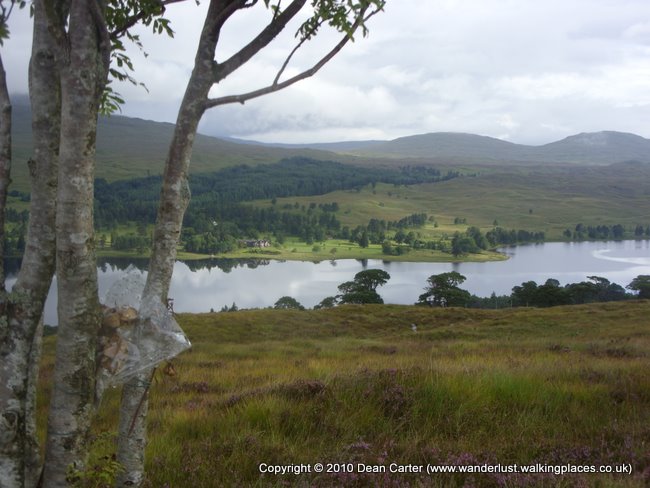 Cold, cold morning. I was glad to be packing things away and getting ready to leave as a lie-in is practically impossible when you’re in a tent and it’s only a handful of degrees above freezing. Predictably, as soon as we emerged from our tents the midges descended and started feasting. I started swearing and swatting uselessly at my arms and legs, wishing Darryl would speed things up as I was clearly going to be ready before him. He caught up a little though, so that after I had marched away from camp with my pack on hoping to lose the little biters, he was only a few minutes behind. We started up the hill out of Bridge of Orchy, annoyed that the midges seemed to be following us, and headed up through trees then along a rocky path until we caught sight of Loch Tulla and to its left, along the road, the Inveroran Hotel.