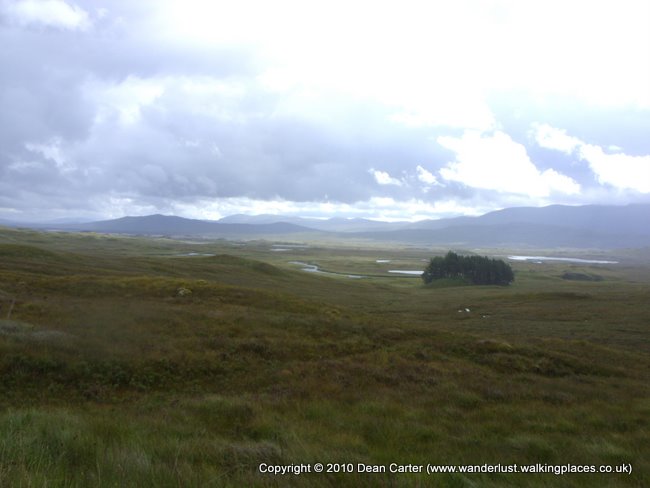 Rannoch Moor opened up, but because of the dull weather it wasn’t really possible to truly appreciate it. I can imagine that on a clear, sunny day it would be a lovely, peaceful place to be. We trudged on, squelching in mud and puddles and came to a small bridge where three guys were huddled together in their ponchos looking pretty dejected. There were the remains of a fire nearby so they had probably camped on the moor the previous night. No wonder they looked miserable. We chatted with them and one of them asked how far it was to Kingshouse. I said it was about four or five miles and he used this to persuade his friends to carry on. They obviously didn’t have much enthusiasm left for walking as they said they would be catching a bus home at the earliest opportunity. As we stood chatting The Four Fish passed us and the super-competitive little woman gave me an odd smile and raised her eyebrows as she passed as if to say ‘dawdling a bit aren’t we?’ I had a private chuckle to myself as they carried on along the path. They clearly hadn’t got over us beating them on the way to Inverarnan and were taking any opportunity to try and get their own back. We only saw them once more after this day - the following morning in Kinlochleven. I think they really put a spurt on that day as we never caught them up. They must have decided their lives depended on getting to Fort William before us. Ha ha.