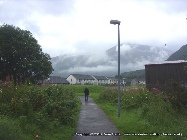 We took a couple of photos then began the walk which passed around the side of McDonald’s and Morrison’s, through some small wooded areas and toward a housing estate and river that flowed eventually into the imaginatively named Loch Lochy.